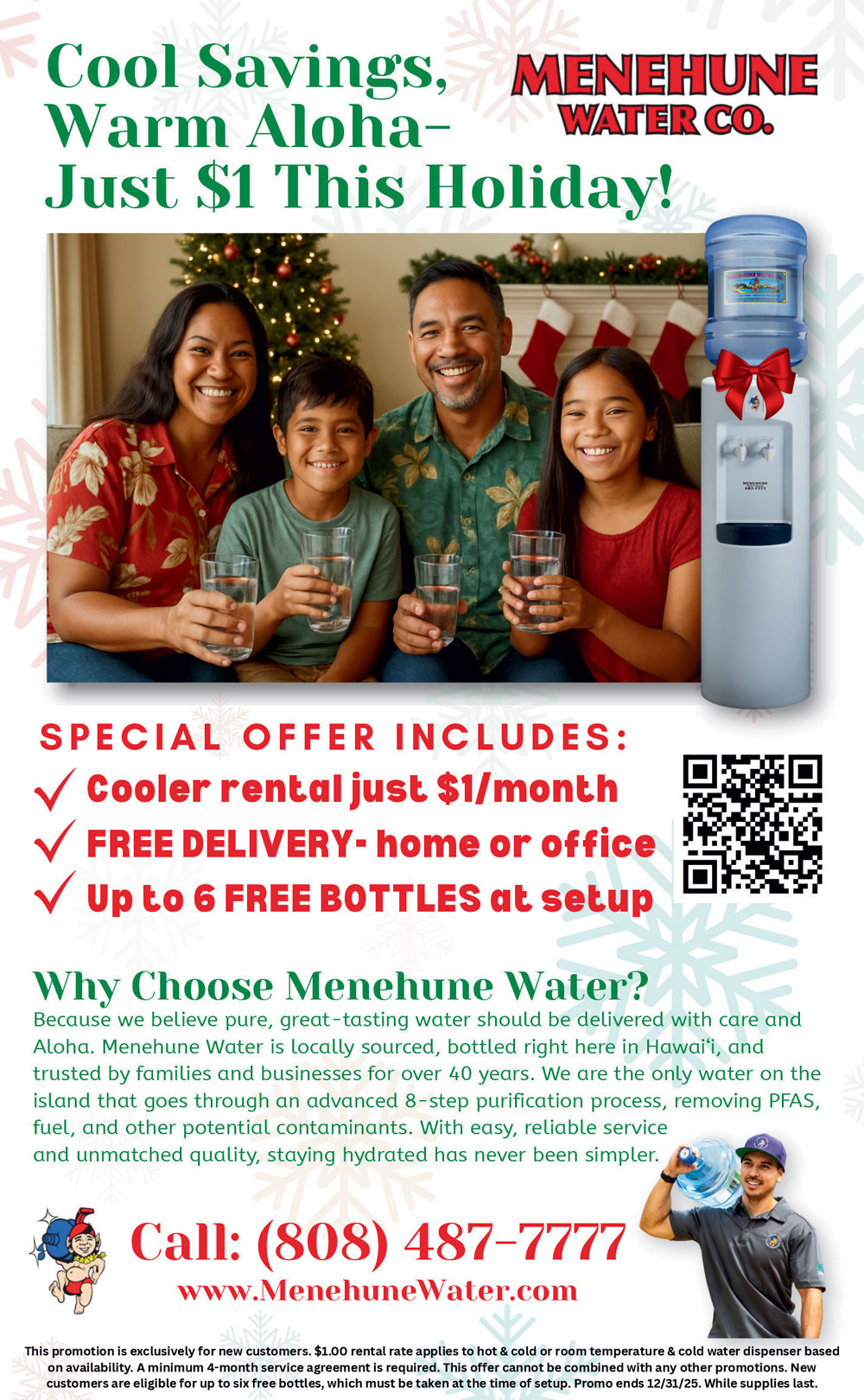 Shopping Specials Menehune Water Cooler Rental for $1/month For new customers only. Not able to combine with any other offers. 4 month minimum agreement required.