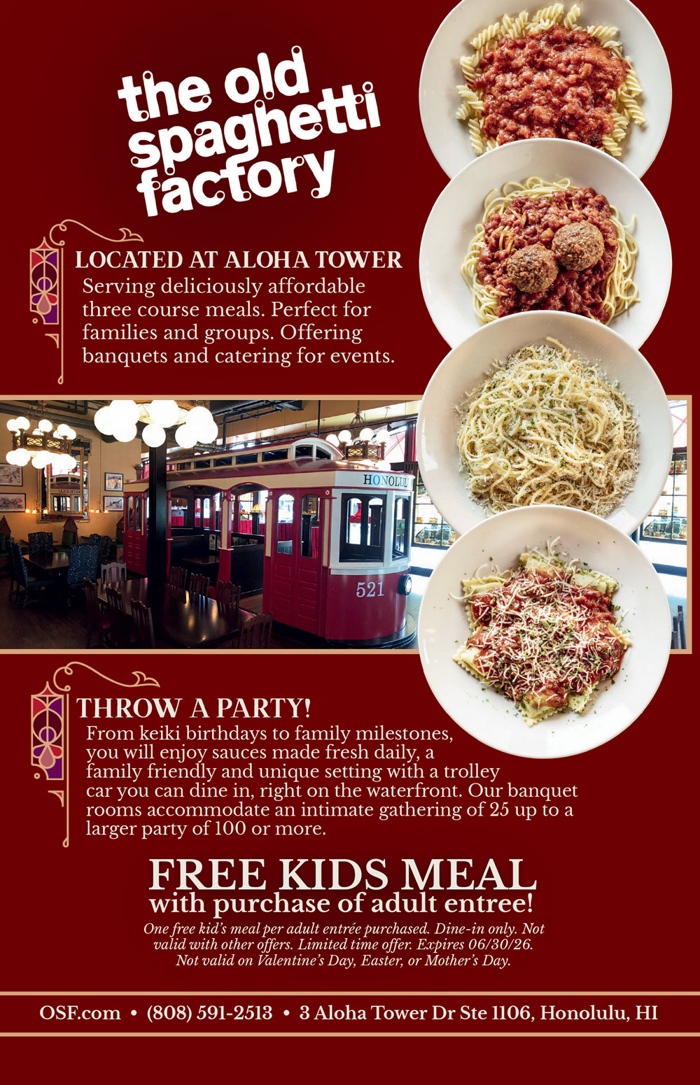 Free Kids Meal with the purchase of an adult entree