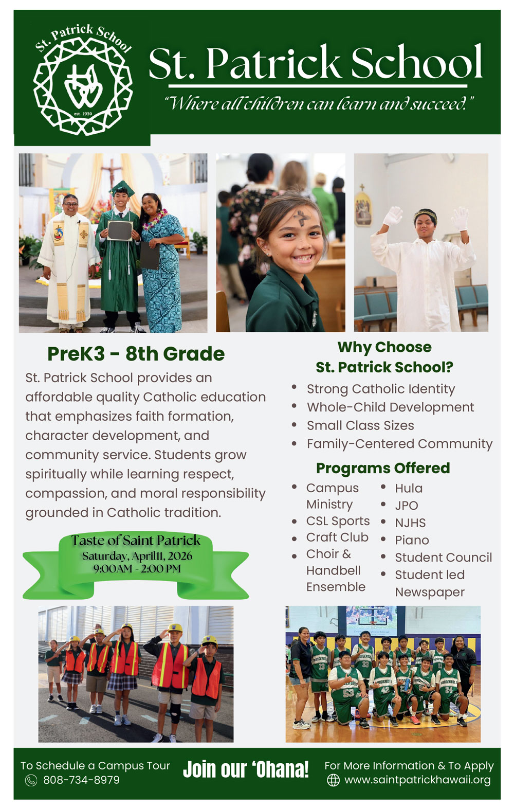 Saint Patrick School invites students to keep learning and exploring through its Summer Discovery program, a fun and enriching extension of the school year designed to strengthen academic foundations while engaging young minds in creative experiences. With a curriculum that blends core academic support with hands-on activities and opportunities for social connection, this summer program helps keiki build confidence and curiosity in a nurturing, familiar environment. From structured learning time to playful enrichment and community-building experiences, Summer Discovery offers families a balanced way to keep students growing, inspired, and connected during the summer months.